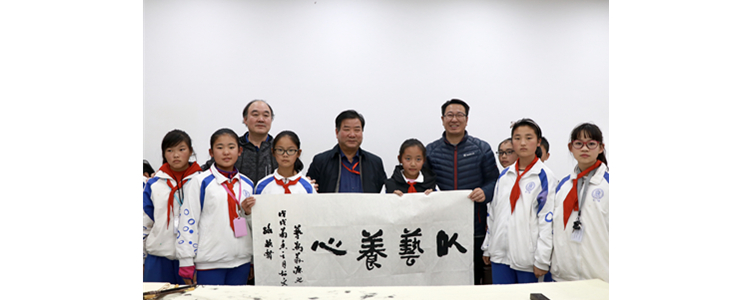 继孙墨青与王洁两位国际艺术家亲临bg真人娱乐文安驿学校指导后,2018年10月19日,我们又迎来了中央文史馆耿识博司长率领艺术团队路毓贤老师、杨卫民老师、周玉兰老师、罗坤学老师等来我校指导。