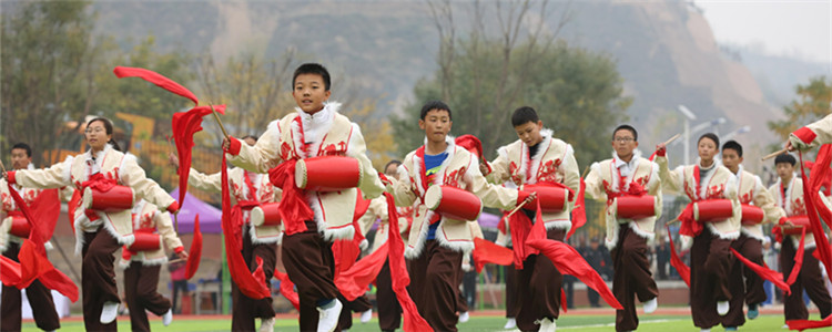 富有陕北地方特色的安塞腰鼓表演,激情澎湃的武术短棍表演充分展现了我校师生斗志昂扬的精神面貌和奋发向上的精神气质。