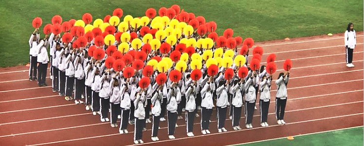 上午八点整,开幕正式开始。各年级方阵精神饱满、斗志昂扬,喊着整齐的口号,迈着有力的步伐依次从主席台前走过。军体操英姿飒爽,功夫扇青春洋溢,五行刀气宇轩昂,集体朗诵慷慨激昂……特色方阵的展示把气氛推向高潮。