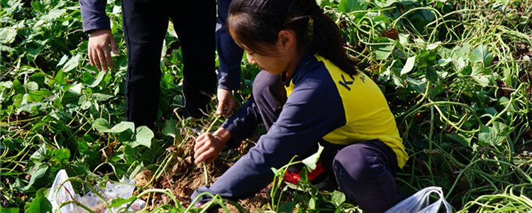 “薰衣草的香气有什么作用?”“我们挖到的红薯是它的什么部分?”“马鞭草的英文怎么说?”中外教老师们也在活动的间歇,通过引导与提问,向同学们讲解相关知识。满园的草木亦营造出浓浓的环保氛围,爱护花草、垃圾分类,同学们在鲜花满园、绿树成荫的大自然氧吧中参加活动,学习知识又愉悦身心。