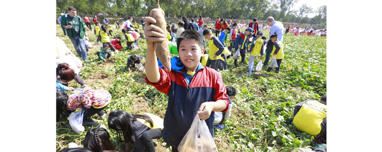 “老师,你看我挖到的大红薯!”