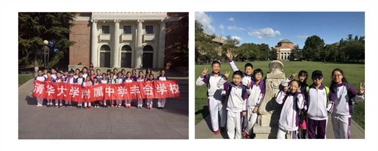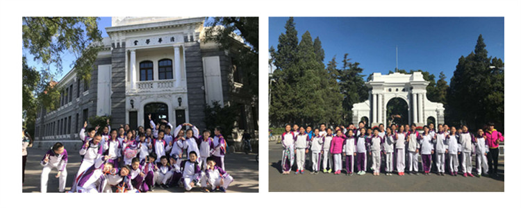 五六年级学生来到清华大学进行参观。在这所高等教育的顶尖学府中,五、六年级的孩子们睁大了双眼,图书馆、大礼堂、日晷、清华学堂、宽阔的草坪、宽敞的道路、清澈的小河、朱自清笔下的荷塘……琳琅满目,美不胜收,同学们初次感受到大学与小学的不同之处。或许,正是因为这些美好的触动,同学们更明白了“自强不息,厚德载物”与“行胜于言”的内涵,从而为孩子们插上梦的翅膀。