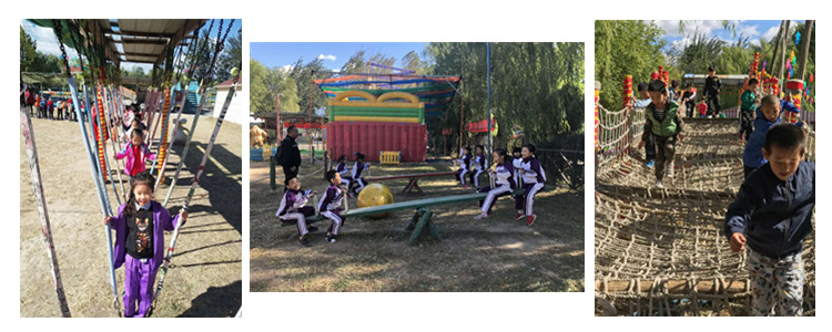 一二年级师生首先来到了蟹岛绿色生态度假村。同学们在动物园里参观了鸵鸟、孔雀、牦牛、骆驼、天鹅等动物,通过与小动物们的亲密接触,激发了孩子们对动物的关爱之情。接着,同学们在儿童乐园体验了充气城堡、滑梯等拓展训练项目。在蔚蓝的天空下、和煦的阳光中,孩子们尽情地玩耍,感受童年的快乐,每一个孩子的脸上都洋溢着幸福的笑容。