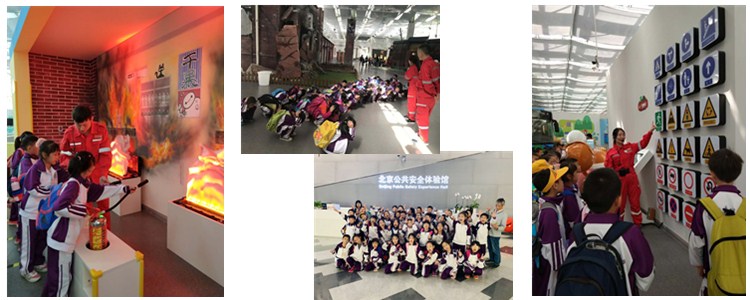 一二年级学生又来到北京公共安全体验馆,观看了公共安全宣传片,学习了七大自然灾害等相关知识,体验了地震街景、烟雾逃生、虚拟灭火等灾难场景,并学习了逃生法则。通过参观和亲身模拟体验,学生们接受了一次公共安全教育,不但学到了很多安全知识,而且掌握了许多自救、自护的生存技能。孩子们还积极参加了消防安全和交通安全的知识抢答,更加深入地理解了“健康生活,安全生产”的含义。