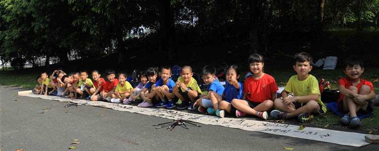书法教师刘宏远带领全体学生在长卷上书写自己的名字,这是我们大家的环保决心书!非常中国风的签名长卷我们将永久珍藏,因为这是孩子们的心意。