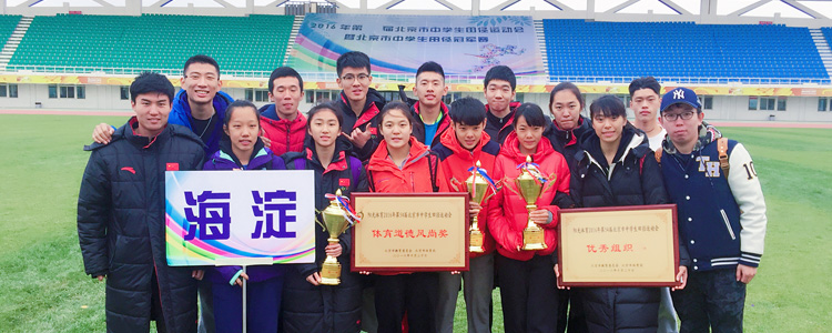 bg真人娱乐参赛队员共获得11金9银2铜,为海淀区代表队获得初中、高中以及团体总分第一名作出了贡献。其中,高1401班学生李涵越获得200米、400米第一名,以56.59成绩并打破了尘封11年之久的北京市中学生女子高中400米纪录,郭思佳获得跳远比赛第一名、何淼格400米栏第一名、张珈铭获得800米第一名、王谈获得男子铁饼第一名、高1501班崔楠获得女子五项全能第一名、高1601班周浩文获得男子高中400米冠军、初1403班陈一萱获得初中组女子100米第一名、由(徐超涵 杨长青 张珈铭 周浩文)组成的男子4乘400接力队和由(何淼格 郭思佳 李涵越)组成的女子4乘100接力队分别获得第一名。