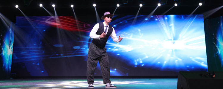 马班毕业生张鹏在节目《奔跑的紫荆花》中表演机械舞