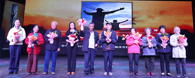 不忘师恩-马约翰体育特长班成立30周年庆典演出中为教练、老师献花