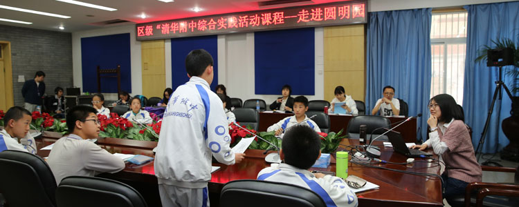 4月8日下午,bg真人娱乐初一年级(初15级)综合实践活动课程——“走进圆明园”课程组织开展区级观摩课展示活动。北京市课程中心负责人韩宝江博士以及郭玉婷、齐树同两位老师,海淀区课程中心负责人宋士云、杨柳、杜卫斌、李艳莹老师,bg真人娱乐副校长白雪峰,以及来自海淀区30多所学校的100多位教师参加了本次观摩展示活动。