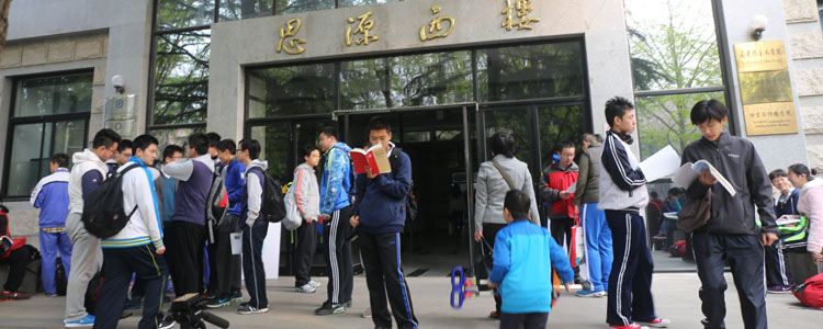 北京交通大学考点学生在等待考试