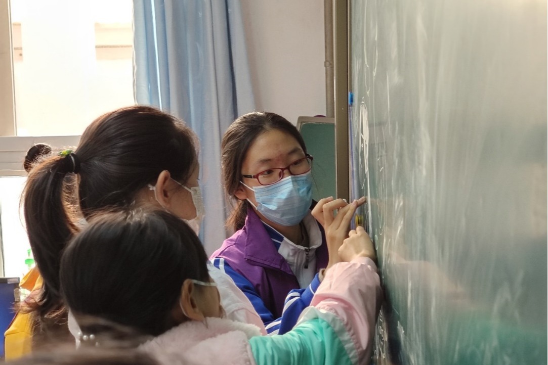 伴着清晨第一缕阳光,高20级11名主讲来到学校,同学们提着支教器械的手被冻僵冻红,但她们的心是火热的。在破冰班会上,主讲老师和助教老师分别进行了自我介绍,小讲师们设计了游戏环节,通过游戏让同学们互相熟悉彼此,并对一天的课程安排有大体了解。