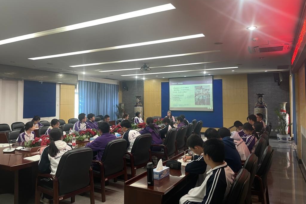 马成洁指导同学们解读五四运动的历史背景、历程,并从政治、经济、文化三方面入手,论述了五四运动的非凡影响和深远意义。“厚德载物,自强不息”是清华大学的校训,也是每一位清华人的座右铭。不论是闻听爱国运动彼时连夜抄录岳飞《满江红》的闻一多,还是那挥舞着的、沸腾着的“还我青岛”的红色,在马博士的讲述中,同学们仿佛身临其境。