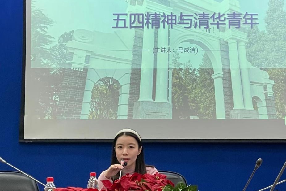 “今日之责任,不在他人,而在我少年”。优秀清华青年段路明和矣晓沅,他们一位是历经坎坷崎岖终于归国奉献的天才少年,一位是终身靠轮椅生活百折不挠最终获得博士学位的“学生年度人物”。马成洁以榜样为例,鼓励同学将个人发展与国家命运紧紧联系。在他们的身上,五四精神与清华青年的勇敢熠熠生辉,照亮了整片天空,在薪火相传的光芒下,同学们将接过时代的火炬,脚踏实地,发光发热,提高个人素养,坚定理想,立大志、明大德,做一个爱国、守法、上进的青年。