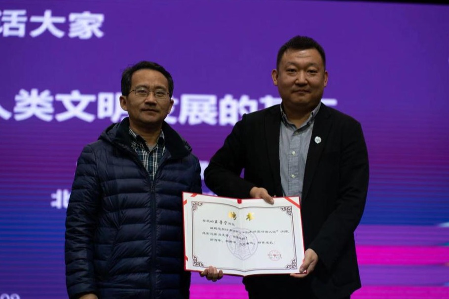 徐文兵副校长为王鲁宁教授颁发水木讲堂聘书