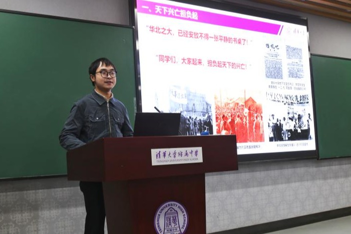 清华大学从师生讲师团曾俊淇正在发言