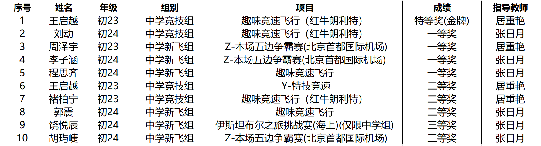 2025年北京市中小学生模拟飞行活动暨全国青少年模拟飞行锦标赛北京地区预选赛圆满落幕。bg真人娱乐模拟飞行社团学生在本次比赛中表现出色,共斩获特等奖(金牌) 1项、一等奖4项、二等奖3项、三等奖2项。