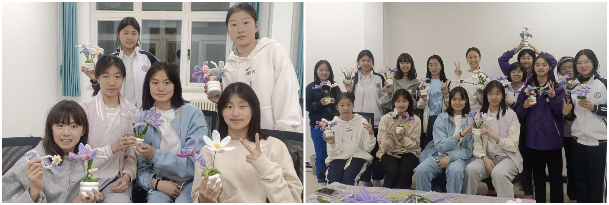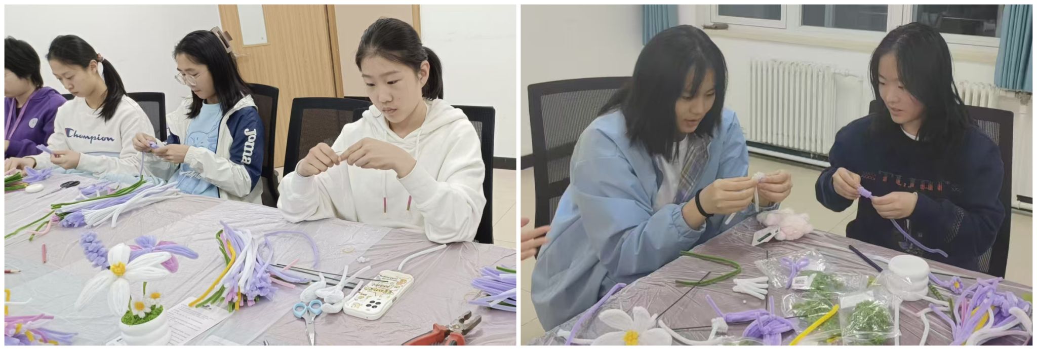 在近一小时的沉浸式创作中,大家暂时褪去了学习的忙碌,沉浸在指尖的创作乐趣里。有的同学精心搭配色彩,有的同学细致雕琢花瓣,每一个动作都充满了耐心与热爱。随着一盆盆春日繁花在指尖绽放,同学们的脸上也洋溢着满满的成就感,现场不时传来欢声笑语。
