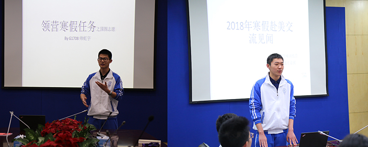 高1708 帅虹宇同学(左图)和高1709王嘉骐同学(右图)做分享