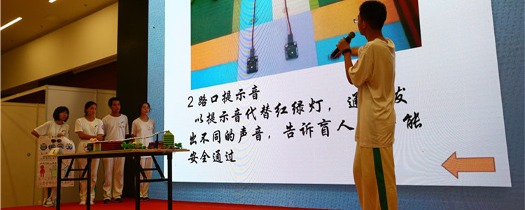 7日下午,大赛进入路演评审环节,各组分别出场进行五分钟的产品展示阐述和两分钟的答辩。同学们的创意涉及覆盖面广:有的特别关注老年群体,有的专门针对身体有障碍的特殊人群,有的推行环保,有的注重健康。第八组的“儿童之梦”为孩子们设计了智能闯红灯报警系统,第十组的“绿色环岛”打造一个节能、环保、宁静的海上城市。第十三组的“多维交通运输”充分利用空间资源,进行立体化交通创意设计。各组创意设计全部以科技创意为支撑,同时表现出附中学子的仁爱之心和人文情怀。