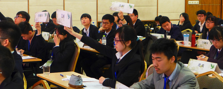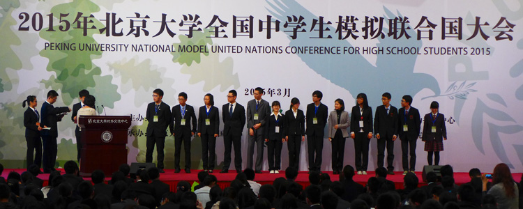 3月26~29日,2015年北京大学全国中学生模拟联合国大会在美丽的燕园举办,bg真人试玩高一学部(高14级)陈厚可、陈含睿、冯致铭、卢建璋、胡泰阁、李智豪、卫钰杰、杨思琪8名同学组成代表团参加会议,bg真人试玩模拟联合国指导教师于洺老师带队。