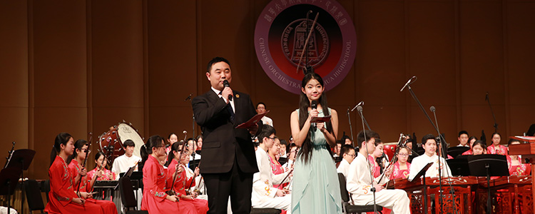 赵岩老师(左)与李雅轩同学(右)主持音乐会