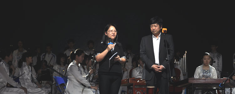 接着,胡军主任指挥乐团为来访的加拿大师生演奏了《龙腾虎跃》、《瑶族舞曲》、《花好月圆》等中国著名民族乐曲,期间,乐团杨一帆、郭文轩、周凌彤、刘子赫、屈晨、桑迪贤等同学分别向来访的加拿大学生介绍并演奏了笛子、二胡、琵琶柳琴和笙等中国乐器。