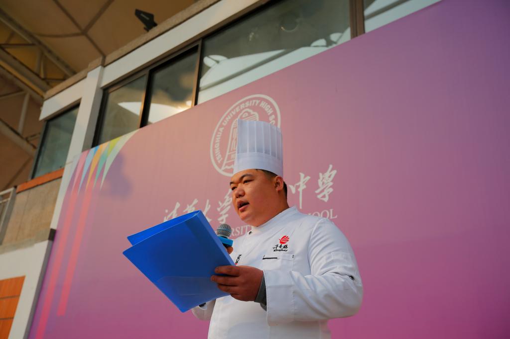 大家上午好!我是食堂二层主管常万远。今天很荣幸能在这里与全校师生共同学习文明用餐。
