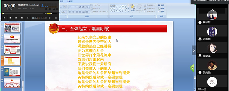 有的团支部邀请班主任参加主题团日活动,老师与同学们交流学习体会,还与同学们线上合唱《bg真人娱乐校歌》、《五月的花海》、《我们都是追梦人》等歌曲,还有的团员为大家朗诵抗疫诗歌,舒缓大家的心情,鼓舞支部士气,提高支部凝聚力。
