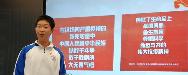 接下来,团干部们带领同学们学习了习近平总书记在全国抗击新冠肺炎疫情表彰大会上的重要讲话,总书记从6个方面系统总结概括为了“生命至上、举国同心、舍生忘死、尊重科学、命运与共”的伟大抗疫精神,团干部们结合具体实例对抗疫精神进行逐条解读。在第二个板块“致敬抗疫英雄,勇担时代重任”中,同学们学习了国家勋章和国家荣誉称号获得者钟南山院士、“人民英雄”张定宇、指导中医药全程介入新冠肺炎救治、主持研究制定中西医结合疗法的张伯礼和为疫情防控作出重大贡献的陈薇院士的感人事迹。