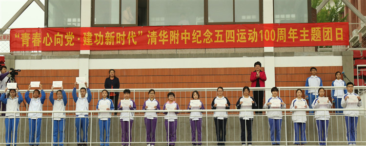 在全校师生的见证下,来自初高中优秀团员代表为新加入中国共产主义青年团的47位新团员佩戴团徽。紧接着,由海淀区优秀共青团员张峰搏同学担任领誓人,新团员在团旗下庄严宣誓,老团员重温入团誓词。在五四运动一百周年之际,bg真人娱乐的团员们饱含责任感和使命感,用坚定而有力的誓言向组织表明自己的决心。