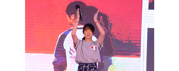 接下来是高1712张润东的《望穿》,唯美的歌声,展现了辽阔大气的音乐意境。“Come On 逆战逆战来也!”高1715阚研佳以一曲《逆战》点燃全场。动感的音乐、热血的歌词,阚研佳爆发力十足的嗓音使观众热血沸腾。