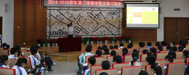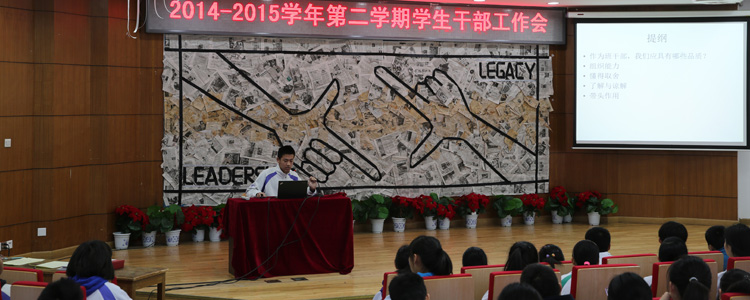 3月1日,2014-2015学年第二学期初、高中学生干部工作会分别在B106和B208教室举办。初、高中各班的班干部共计600余人参加了工作会。会议包括班级工作经验分享、新学期工作展望、值周工作培训等内容。