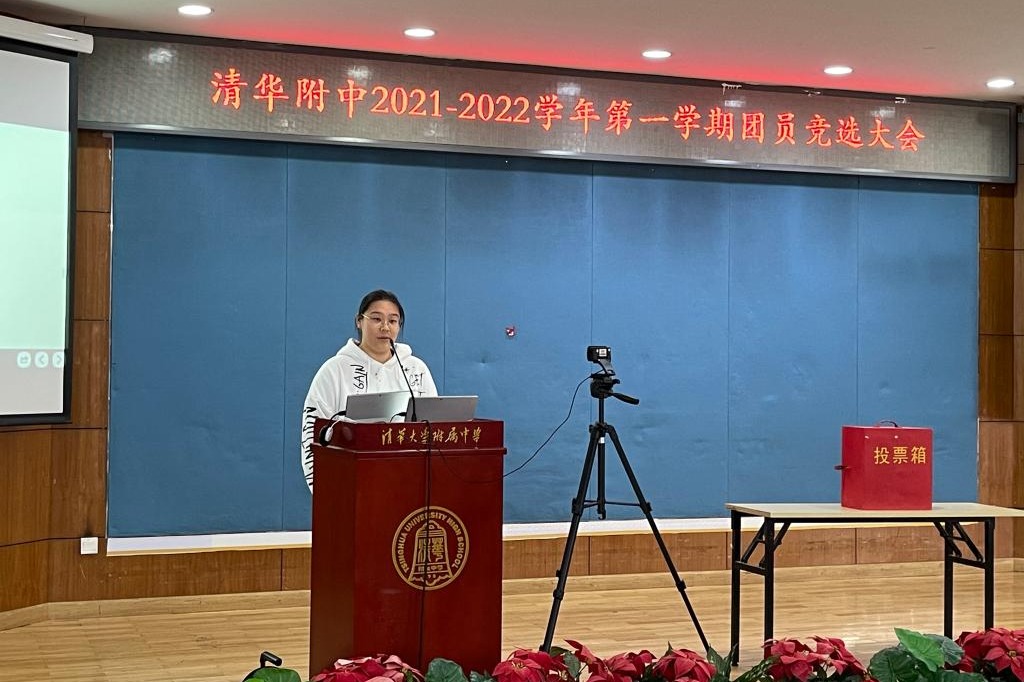 2021年11月25、26日中午,bg真人试玩2021-2022学年第一学期高二、高三年级新团员竞选大会在华茂楼106举行。团委书记任星阳、校家委会家长代表、28位入团候选人以及来自高中各团支部的团干部、入团积极分子近130余人参加了选举大会。