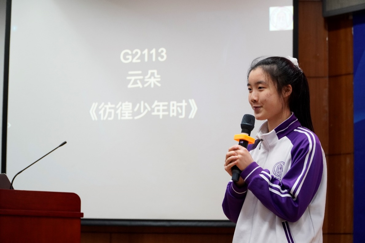 高2113班云朵同学以“彷徨少年时”为题,结合同学们的生活经历,深入讲解了“少年时”坎坷的珍贵,并与“彷徨”二字结合,阐释“彷徨少年时”对于人生成长乃至国家发展的重要意义,激励同学们在现在的“少年时”不懈努力,为国家的发展献出自己的一份力量。