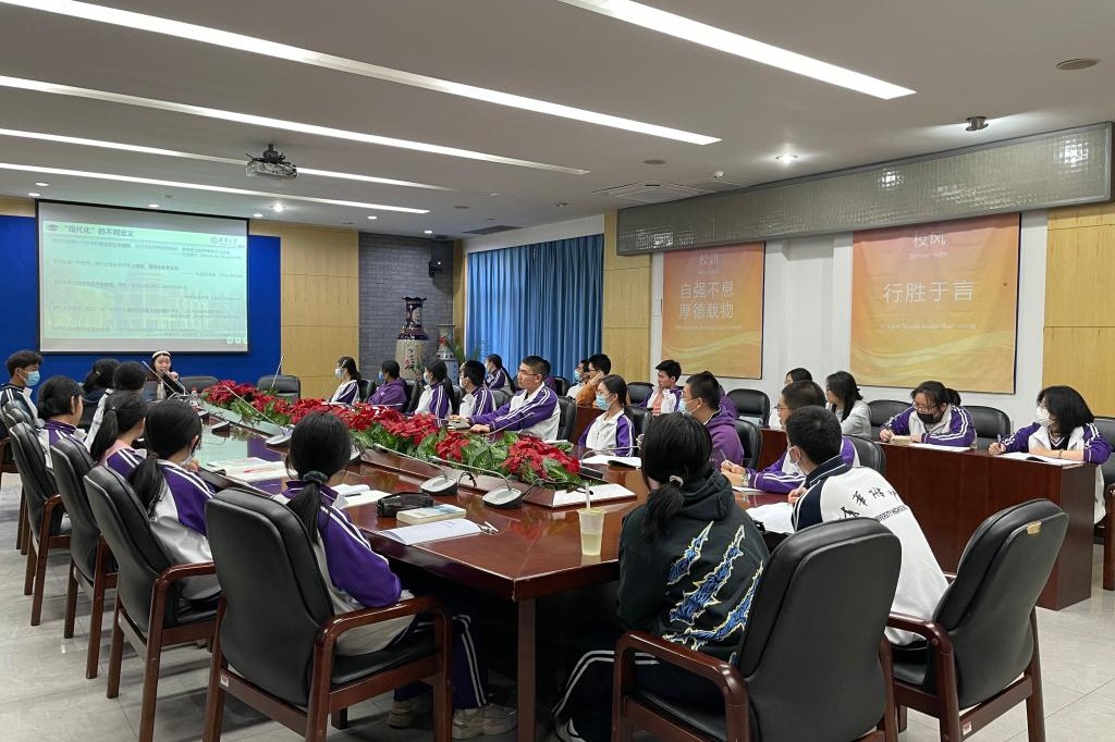 3月10日中午,bg真人试玩学生业余党校邀请清华大学马克思主义学院博士生马成洁博士以《中国式现代化——推进中华民族伟大复兴》为题目做专题讲座。来自高一、高二的三十余位学生业余党校学员,聆听了此次讲座。
