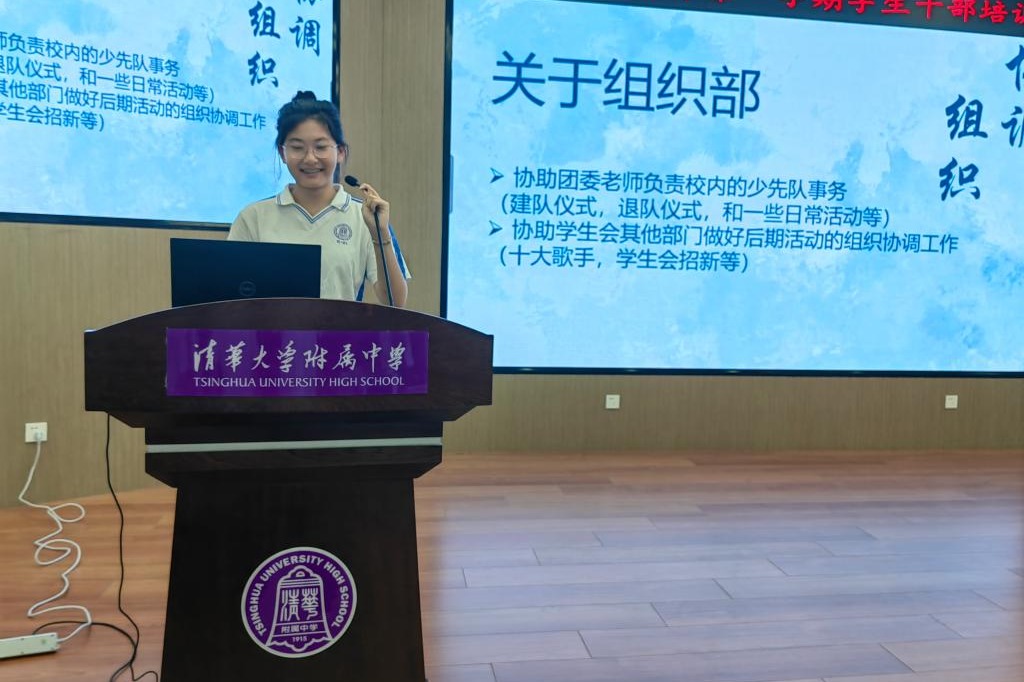 最后,团委书记于洺老师以“当好学生干部:为什么,怎么做”为题,介绍了bg真人娱乐的德育理念和育人目标,提出了对附中学生干部新的要求和期待,希望学生干部们能够“坚定理想信念,练就过硬本领,锐意进取、改革创新”。