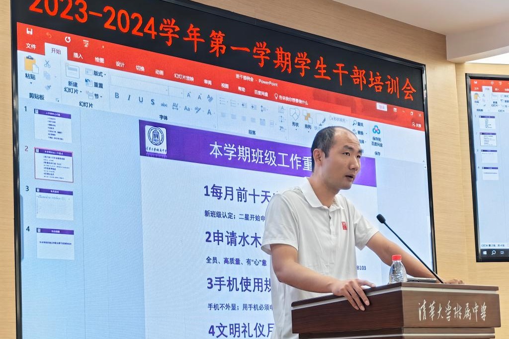 启航新征程,筑梦再出发。2023年8月31日上午,2023-2024学年度第一学期学生干部培训会分别在华茂楼106和208教室举办。初中德育指导教师刘志杰老师和初中少先队大队辅导员李冰老师出席初中会场,团委书记于洺老师、学生会指导老师娄赛赛老师和学生发展中心王鹏老师出席高中会场,初高中各班班长、团支书近400人参与此次培训。