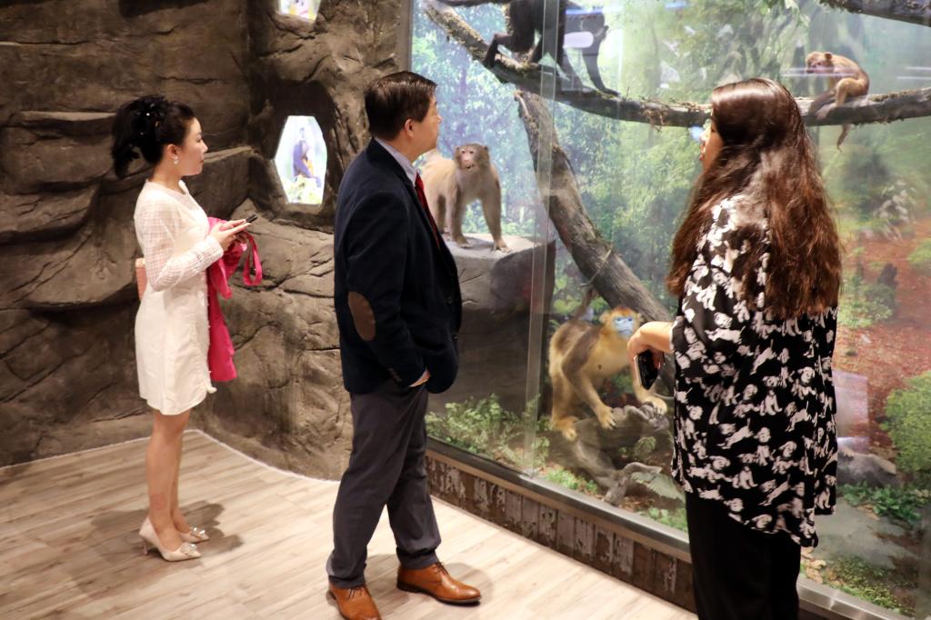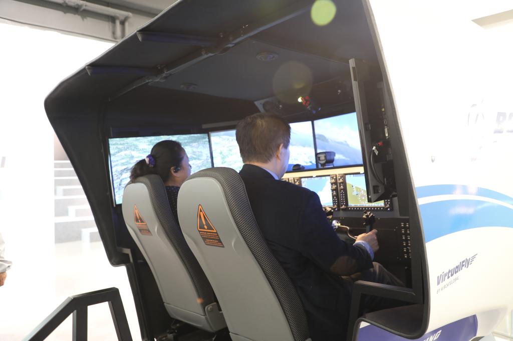 接下来,校领导、学生代表带领黄院士一行参观了校园。团委学生会和校园电视台的同学们一路指引,向嘉宾认真介绍校园的风景与历史。图书馆中,同学们正在认真阅读;教室里,同学们正在全神贯注听讲。随后,嘉宾一行又来到位于实验楼的波音•牛顿飞行学院,在模拟飞行器中体验了飞机驾驶;来到以“人与自然和谐发展”为主题的标本馆,嘉宾们看到了bg真人试玩丰富的标本收藏,连连称赞;来到操场,看到了同学们正在认真筹备即将到来的校运动会。