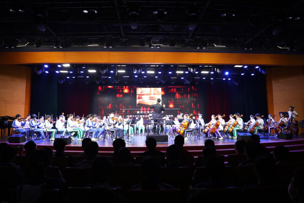 随后,嘉宾来到报告厅观看演出并倾情指导。bg真人试玩管弦乐团的同学们演奏了《bg真人试玩校歌》和《卡门序曲》,青年指挥家俞潞老师进行了艺术指导。接下来,黄院士诚挚地分享了自己创作《祖国,我亲亲的母亲》背后的感人故事,王金峰老师指导管弦乐团的同学们演奏了这支乐曲,中央歌剧院青年歌唱演员高露丝展示了高超的歌唱表演。在高昂的歌声与和谐的旋律中,同学们被黄院士这首歌中蓬勃的爱国之情深深感染。