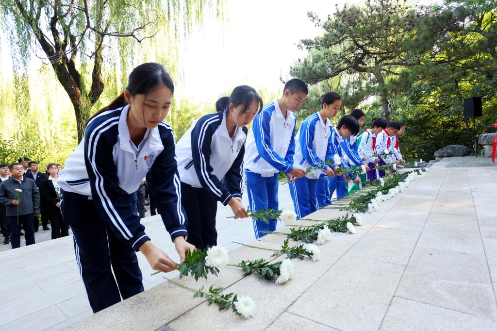 bg真人试玩学生代表手持白菊缅怀英烈