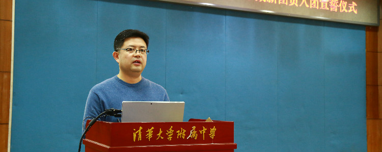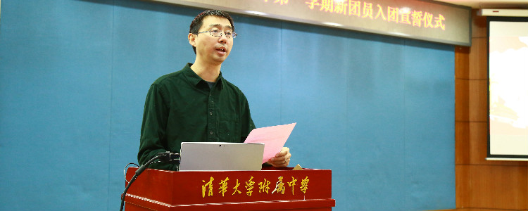 初18级年级组长张彪老师寄语新团员,他对同学们表示祝贺,希望同学们在今后的学习和生活中不断提高自身素质,历练工作能力,以身作则,当好老师的好帮手好助手,成为老师和学生的桥梁,协助老师做好班级文化建设,带动同学们对集体的自豪感和责任感,不断增强班级的凝聚力。在激昂的团歌声中,新团员宣誓大会圆满完成。