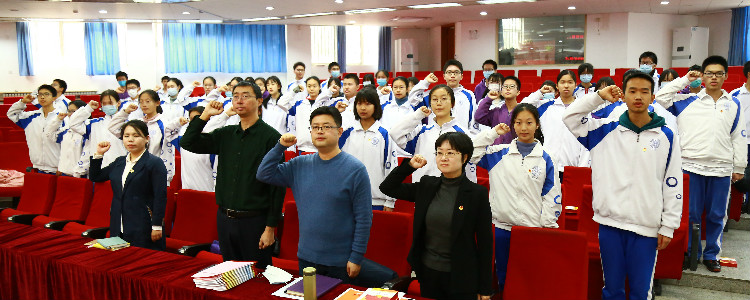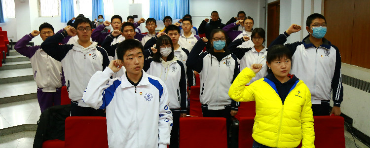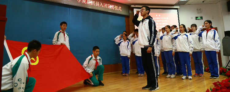 新团员宣誓(中间领誓人:团委副书记高1911班沈芸伍)