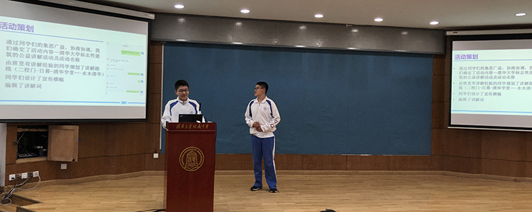 初1805班同学开展了清华大学标志性建筑的公益讲解活动,他们的活动准备十分充分,也提到了在活动过程中遇到了天气不好的困难,但他们还是克服了困难顺利完成了公益活动。