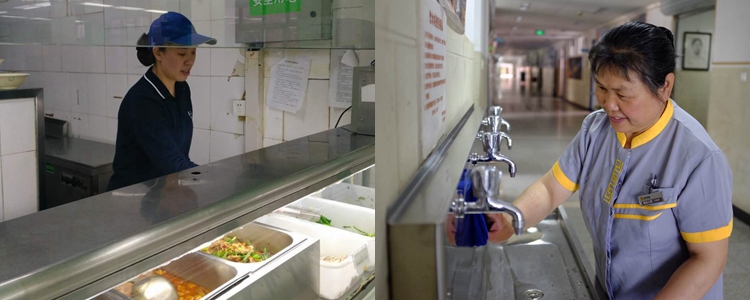 感动瞬间·食堂拉面口阿姨(左)、保洁阿姨(右)