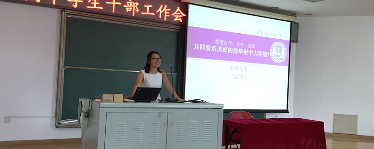8月31日,2016-2017学年第一学期初、高中学生干部培训会分别在B106和B208教室举办。附中本部及奥森校区初、高中各班的班干部共计600余人参会。会议内容包括班级工作经验分享、新学期工作展望、值周工作培训、新学期团委学生会招新宣传等。朱毅豪同学主持会议。