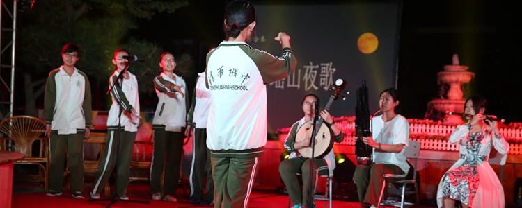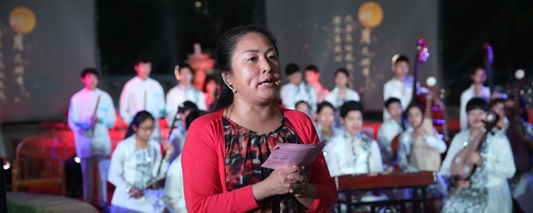 民乐团倾情演绎的《花好月圆》为晚会奠定了古典、浪漫的基调,古筝独奏《云裳仪》,笛子独奏《姑苏行》,民乐合奏《瑶山夜歌》,古典乐器的吟唱让晚会充满宁静悠远的韵味,时间的流淌在这里都放慢了脚步。语文组教师奉献了《水调歌头》歌与诵,从千古名篇入手,引领观众感受“千年月痕”,体会文化内涵;邹明老师还讲解了中秋赏月的文化传承——春分祭日、夏至祭地、秋分祭月、冬至祭天,中秋赏月的风俗由来已久,千年来留下了无数脍炙人口的诗篇。使观众对传统文化有了更深的理解,也能更深入地体会中秋月夜之美。