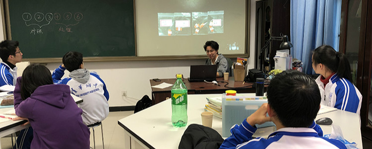 化学分析高研的学生导师杨力忱给学弟学妹们介绍了自己在高研的研究课题《关于可充电银锌纸电池的研究》,并指导学弟学妹们如何确定、研究一个课题。