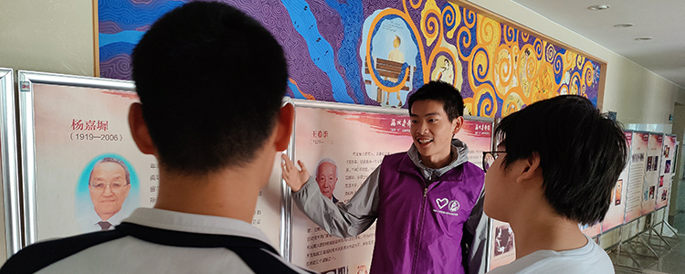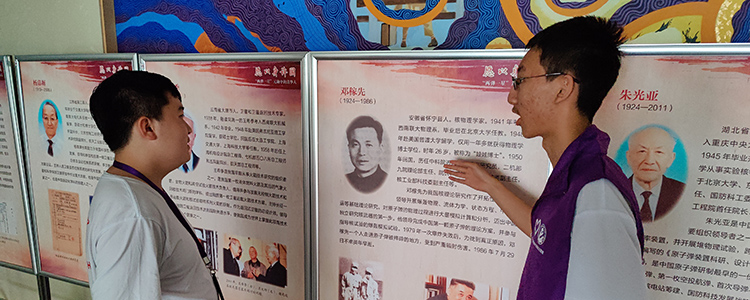 为献礼建党100周年,校党委在华辰楼一层大厅展出反映党史光辉历程和党史优秀人物的多个专题展览。目前展出的主题为《愿以身许国——“两弹一星”元勋中的清华人》。校团委组织“荷声”讲解团志愿者对本次展览开展讲解活动。20余名志愿讲解员通过学习有关史料,撰写讲稿,经过有经验的讲解员的培训后,为前来观展的同学们进行了为期两周的耐心细致的讲解。