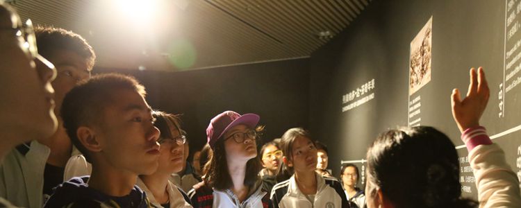 营员们认真听讲解员讲解