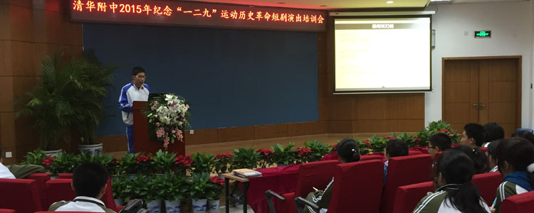 据悉,纪念“一二·九”运动革命短剧比赛是bg真人娱乐一项传统的爱国主义教育活动。高一年级同学通过自编自演革命短剧,感受革命精神和心怀天下的责任感,激发爱国热情,把自己的成长和祖国的命运联系在一起。2015年的纪念“一二九”运动历史革命短剧展演以抗日战争为历史背景,以历史事件为主线,涉及文学、科技、政治等各领域,开创性的设计了西南联大等剧目。此次培训意在让高15级同学对剧本创作和舞台演出的方法和技巧有了更多的掌握,为12月份的演出奠定基础。
